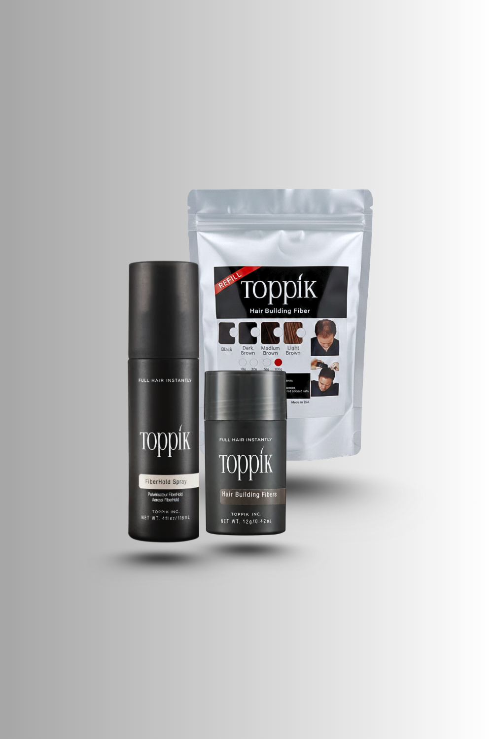 Toppik Hair Building Fibers 3 IN 1 Deal 12g Fiber+ Refill 25g+ FiberHold Spray